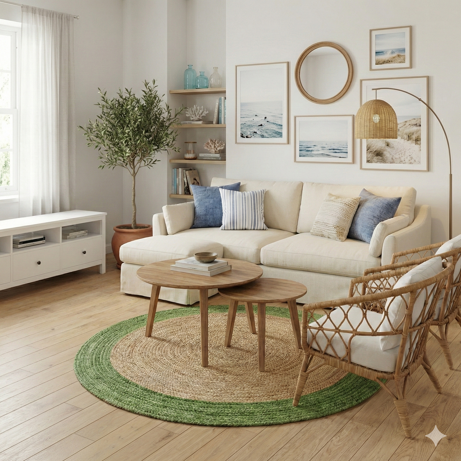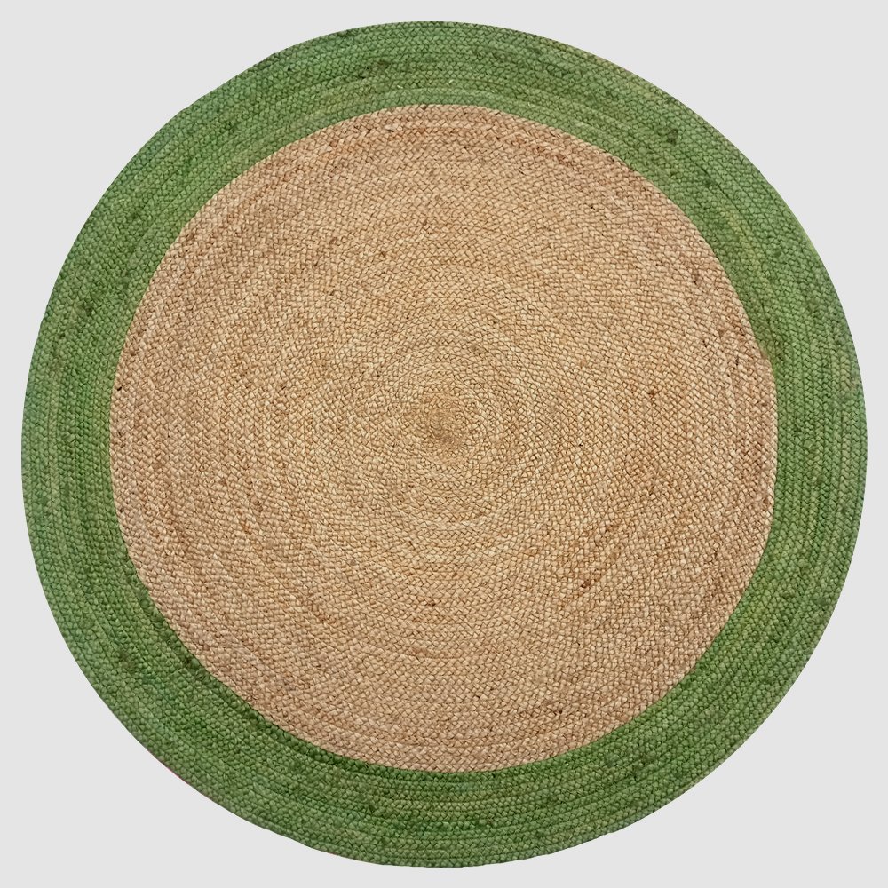The 3 ft round natural green braided jute rug complements: